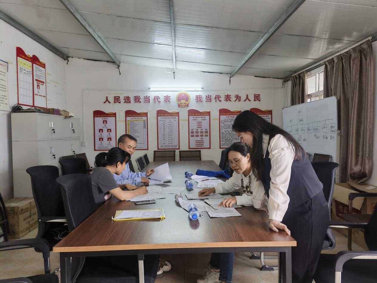 (图为专家组正在逐一核查材料和指导企业做好经费申请工作)