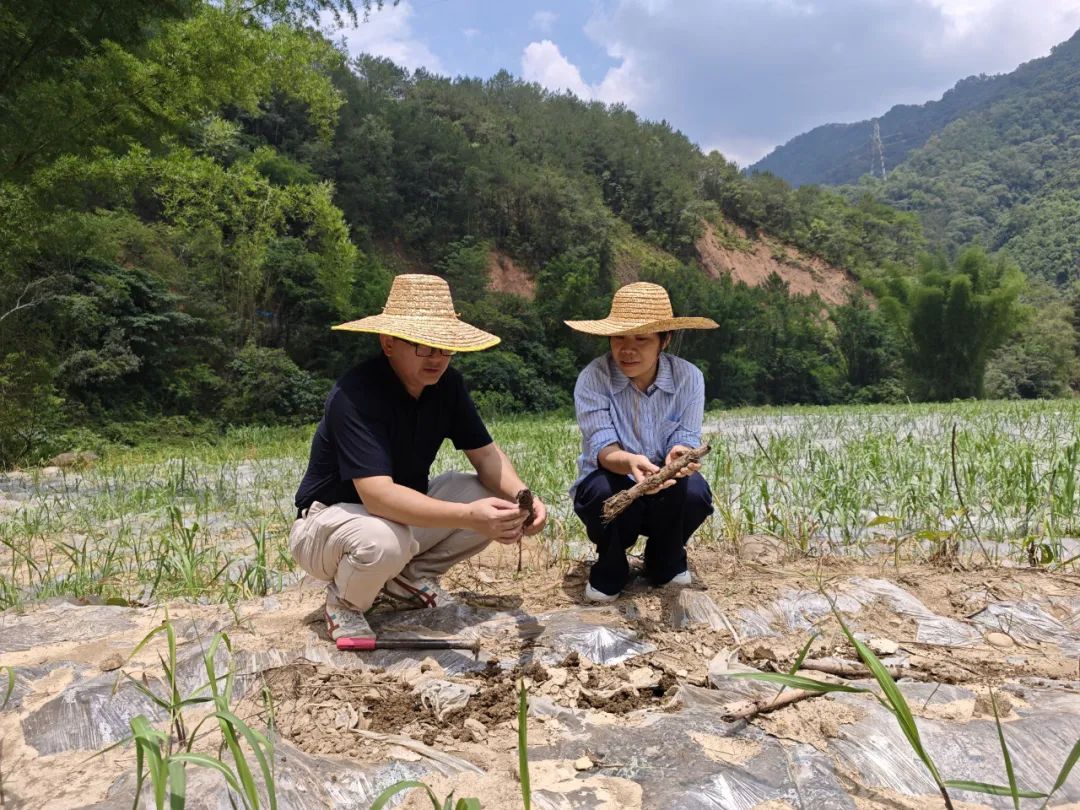 (图为:工作组在大楞乡温矿村查看甘蔗出苗情况)