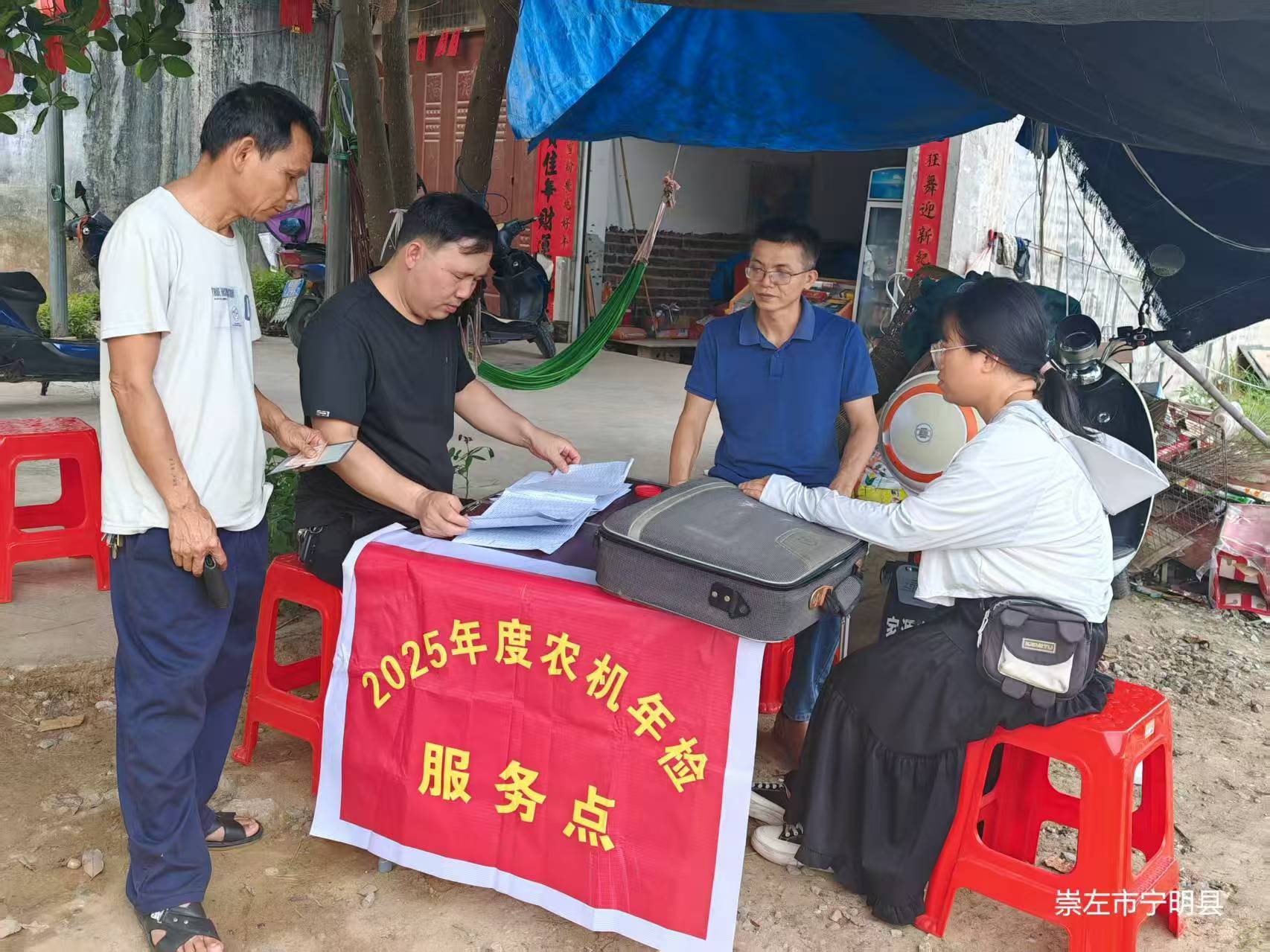 宁明县那堪乡农机年检服务点工作人员正在为机主办理年检手续(宁明县农业机械化服务中心提供)