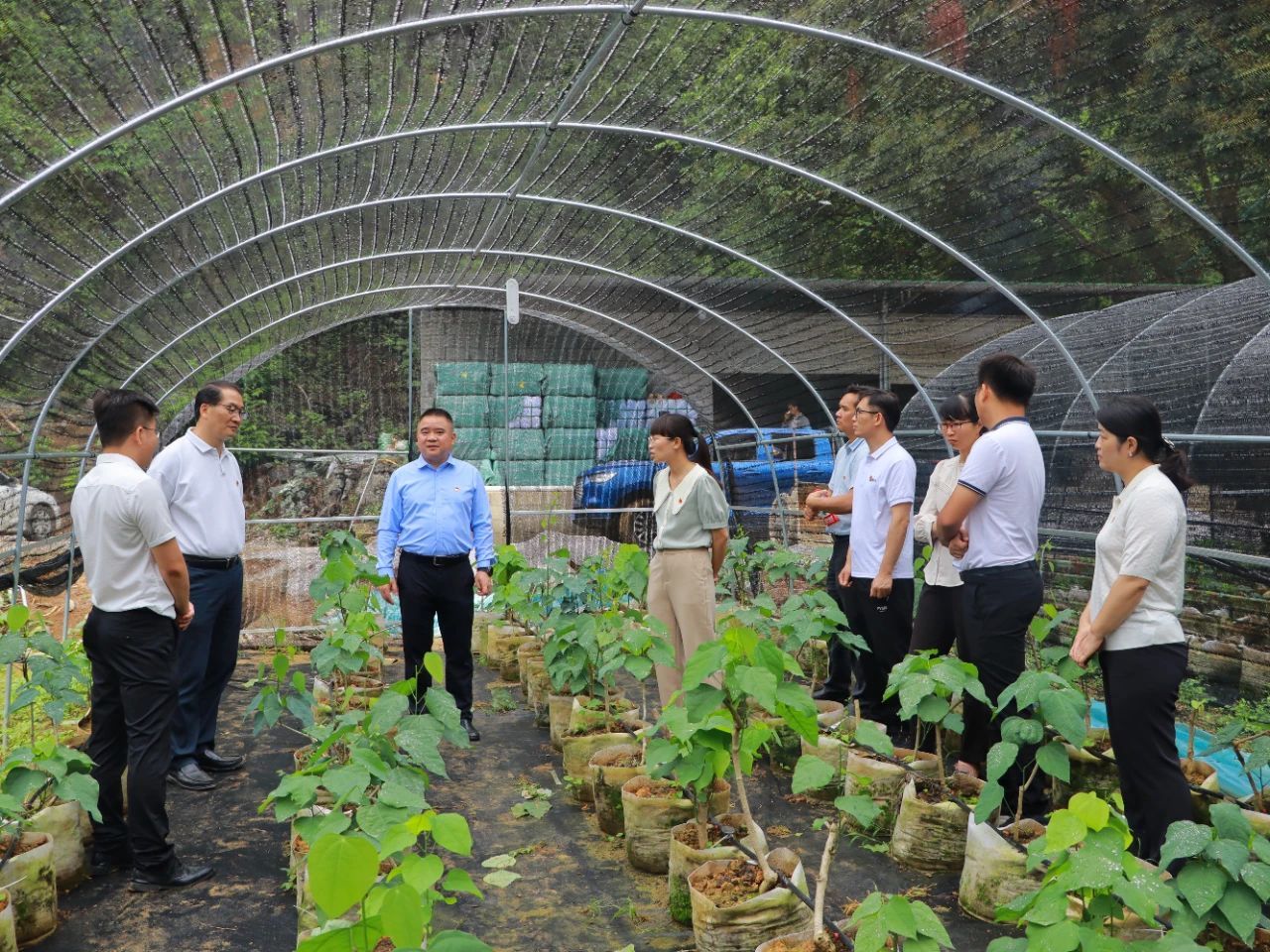 座谈会结束后,广西商业学校一行与福隆乡党委、平良村委、驻村队员等人一起来到平良村辣椒种植基地、慕菲勒红薯种植基地、澳洲蓝龙虾养殖基地进行考察。详细了解各个基地的种养殖规模、技术难题以及产品销售等情况,并结合学校的专业特长,为各产业的长远发展积极出谋划策。