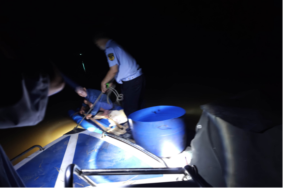 在平而河举报地点开展禁渔期夜间巡查