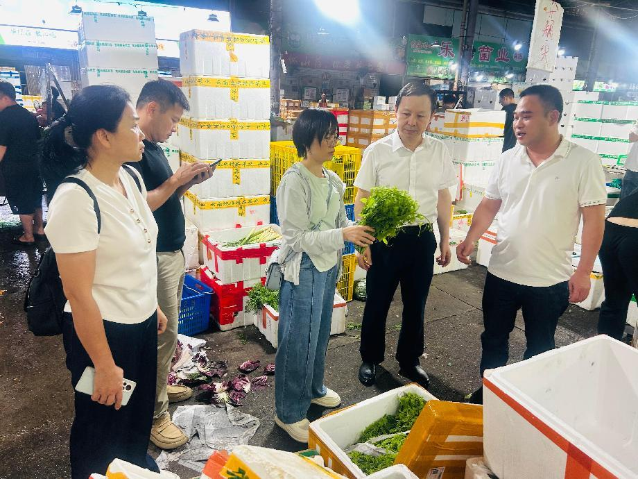 在粤推介期间,崇左市龙须菜(赤苍藤)产销对接(广东)活动工作组领导率工作组成员实地走访了江门市江会水果批发市场、江门市蓬江区白沙江南蔬菜禽畜批发市场、广州市白云区江南市场的农产品批发商家和餐饮企业,详细了解龙须菜的价格、销量、保鲜、加工情况,双方互相交流学习如何因势利导构建龙须菜“抢鲜出圈”冷链物流新型业态。