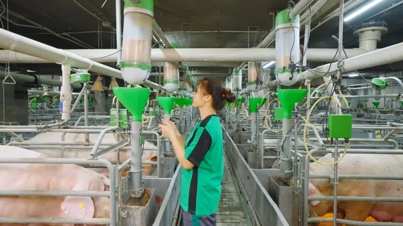 团结种猪场设备投资11330万元,购置了精喂仪、精喂坊、查情器、智能称仔器、智能饮水宝等智能化设施设备,创新运用FPF未来猪场智能服务平台,使猪场的人、猪、物、场连接起来,猪只在线、精准营养、母猪智能查情、肉猪分栏群养、智能环境控制、智能生物安全6大生产环节实现了智能决策与高效协同。2024年生猪产能调控竞赛期间,猪场存栏种母猪1.34万头,平均PSY达27头。2024年累计出栏仔猪33.77万头,带动养殖户开展合作养殖,肉猪头均收益达到220元,实现了养猪增收致富。