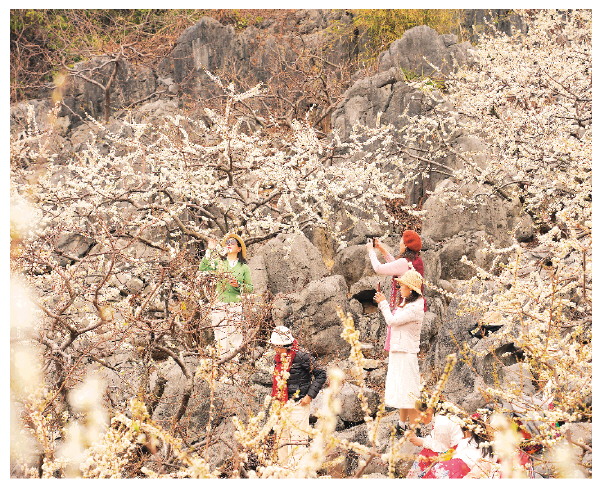 “大岭山李花分批次开放,头批李花在年前已盛开,游客春节后陆续去山上赏花。近期游客日均流量已达到450人左右,而到了周末,客流量能突破千人,很热闹。等天气回暖,游客数量应该还能上涨。”大岭山村党支书黄波告诉记者。