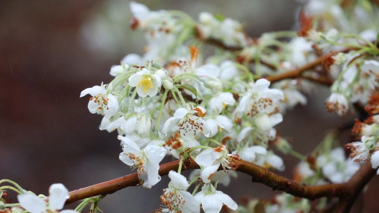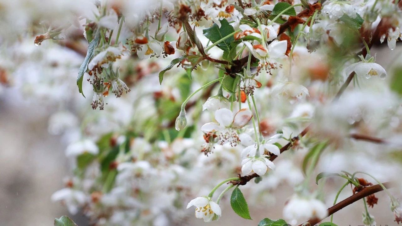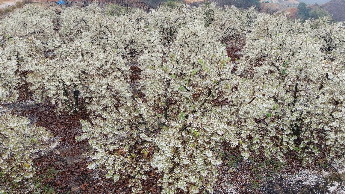 每年的2月是山楂花的最佳观赏期。一朵朵、一丛丛、一簇簇的小白花从枝头开到枝尾,花朵小巧玲珑,洁白无瑕,五片薄如蝉翼的花瓣,点缀着丝丝金黄的花蕊,在风中轻轻摇曳,掀起一阵沁人心脾的花香。淅淅沥沥的雨点落在花瓣上,花瓣散落在山野间,又是另一番风味。