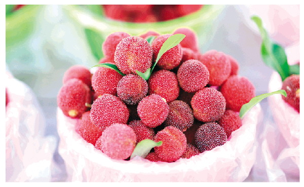 ◤装入果篮的新鲜杨梅。 记者李忠波 摄