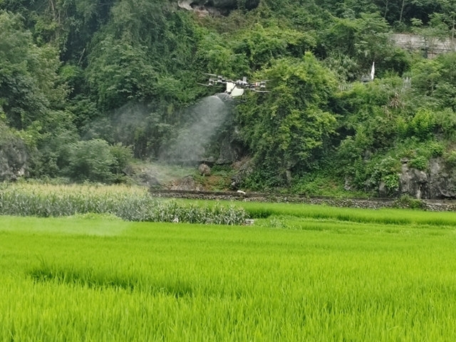 6月4日,为全面贯彻落实自治区党委、政府的工作部署要求,东兰县成人直播 局迅速行动,于东兰镇、武篆镇等乡镇的水稻种植区域积极开展植保无人机统防统治作业,全力以赴做好水稻重大病虫害防治工作,严防病虫害大规模暴发成灾,切实保障粮食安全以及农业的丰收。