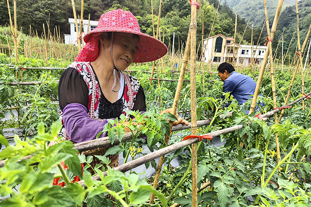 五月,正是农忙的季节。在城关镇中平村西红柿种植基地,一排排棚架错落有致,嫩绿的西红柿幼果挂满秧藤,这些刚刚开花挂果的西红柿幼苗让整个基地呈现出一派生机勃勃的景象。