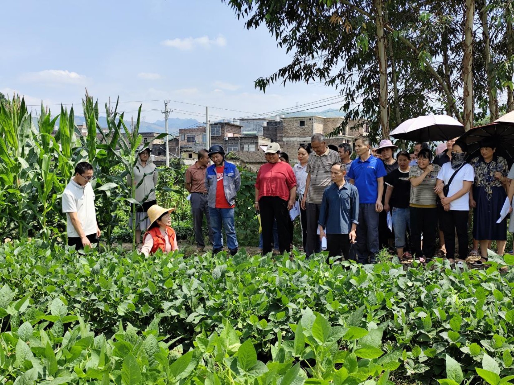 图:贺州市成人直播 局农技科教站副站长、高级农艺师丁成泉、贺州市平桂区成人直播 局人事科教股股长、科技特派员徐青蓉(高级农艺师)深入沙田镇沙田村村田间地头开展大豆玉米田间管理现场指导。