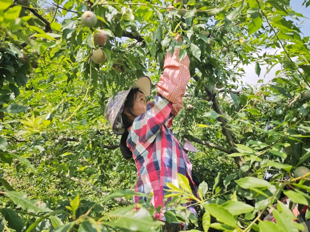 当前正值三华李生长管理的关键时期,预计再过两周将迎来大面积上市。在上市前的黄金生长期,贺街镇各果园正紧锣密鼓地开展疏果作业,为丰收做最后冲刺。 走进贺街镇三步梯李妹三华李果园,只见枝头硕果累累,一派生机勃勃的景象。工人们头戴遮阳帽,穿梭于果树间,按照"去小留大、去劣留优"的原则,精心疏果。"摘小的,留大的,这样卖价更高!"工人们一边忙碌一边交流。 据了解,这是今年第二次疏果作业。三华李作为喜光作物,疏果不仅能改善通风透光条件,为大果腾出生长空间,还能促进果实着色、提升甜度。疏下的小果也能以每斤5-6毛的价格销售,实现资源充分利用。 随着三华李即将成熟上市,当地政府积极搭建产销对接平台。西南村村支书曾南带领桂林银行、美团外卖等企业深入果园考察品质。"今天看到的三华李长势喜人,口感清甜。"桂林银行贺州贺街小微支行行长卢康仁表示,"我们将发挥金融力量,助力三华李销售,为乡村振兴贡献力量。" 贺街镇素有"千年古镇,百年菜乡""中国李子之乡"的美誉。近年来,该镇累计投入3600万元项目资金,新建1210亩三华李标准园,通过优势区建设、数字化提升等工程,推动产业高质量发展。目前全镇拥有三步梯等三大标准化种植基地,三华李已成为带动村民增收的"金果子"。