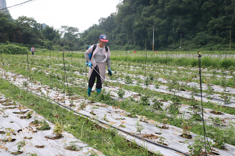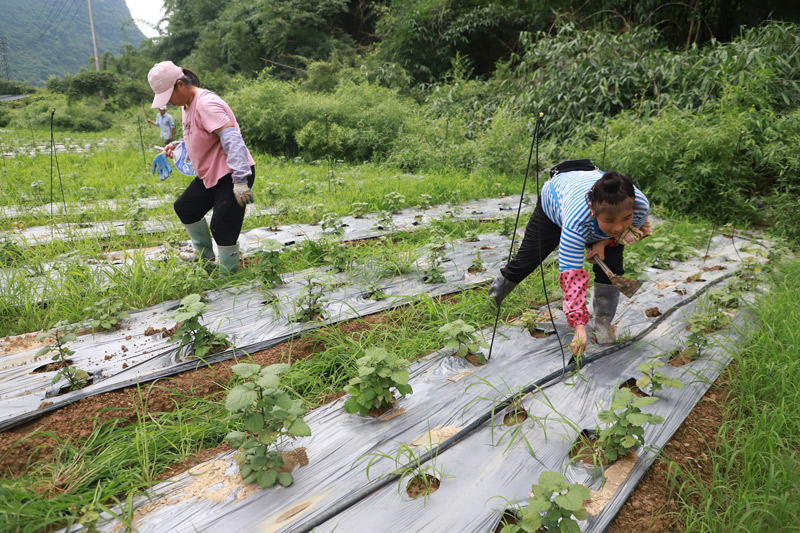 连日来,在融水苗族自治县融水镇新国村麻洞屯的中药材种植基地里,村民们趁着晴好天气,抢抓农时做好中药材的田间管护工作,为中药材丰产丰收打好基础。