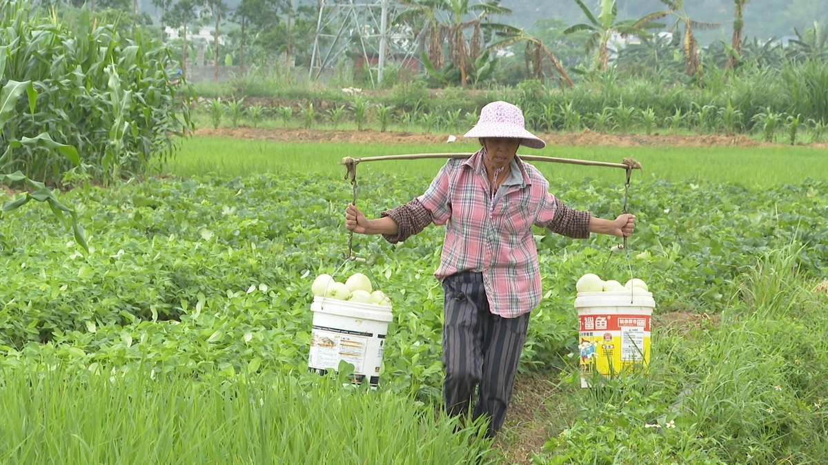 罗永恒介绍,香瓜生长周期需精细管护,采摘季还需雇佣周边农户帮忙,既保障鲜果及时上市,又带动村民家门口就业。“我在瓜田做工两个月,每天能挣100块钱。”村民陈秀月说,现在年纪大了外出务工不方便,在家门口就业既赚钱又能照顾家庭。