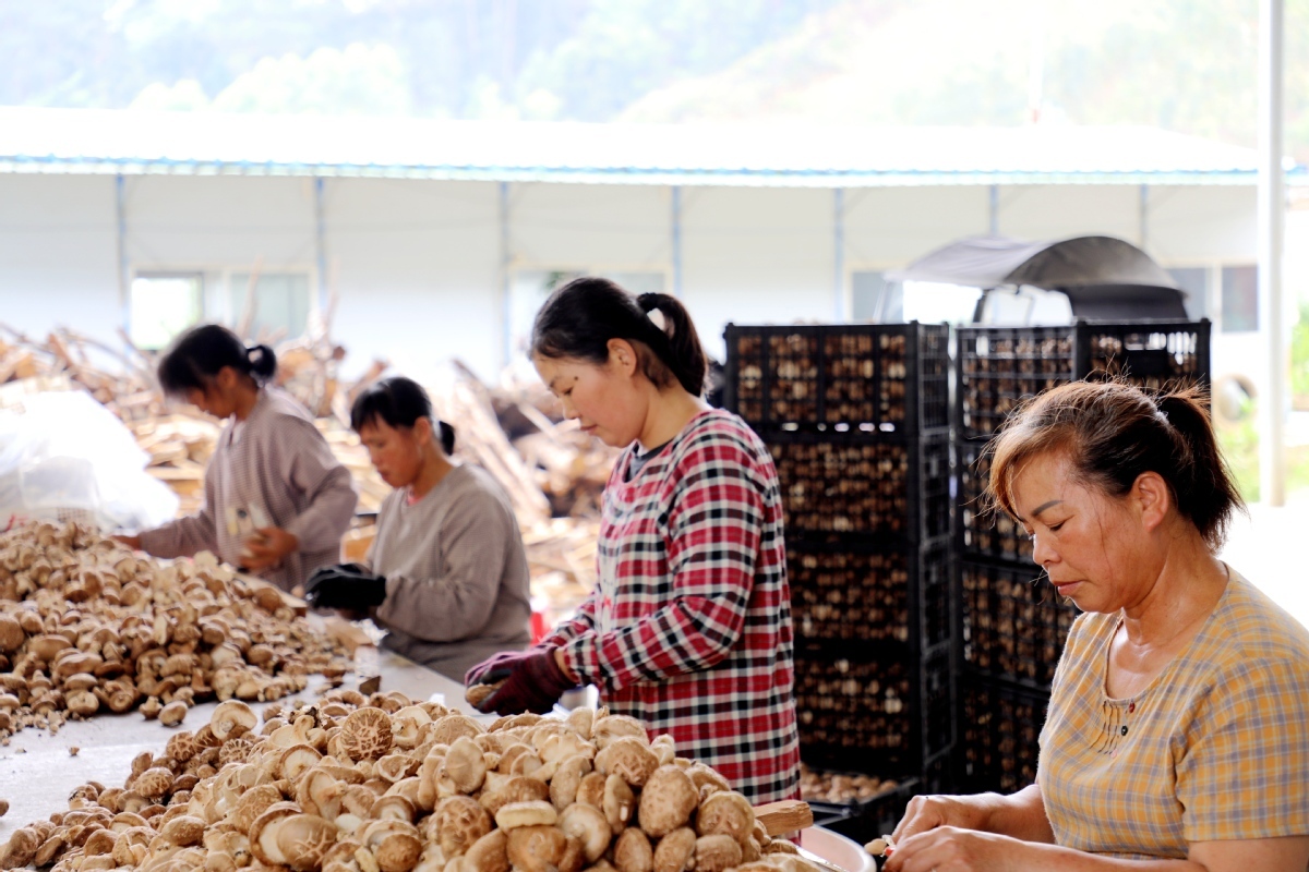走进公司生产车间,工人们正熟练地分拣香菇,剪刀起落间,修剪整齐的菇体快速堆满箩筐;隔壁烘干区内,设备运转声与浓郁的菌香交织,勾勒出一幅繁忙的产业画卷。