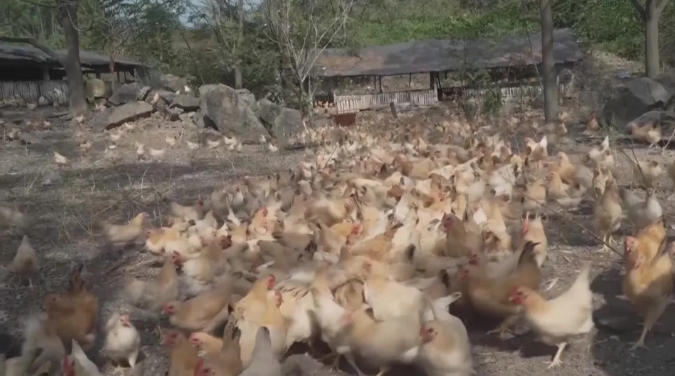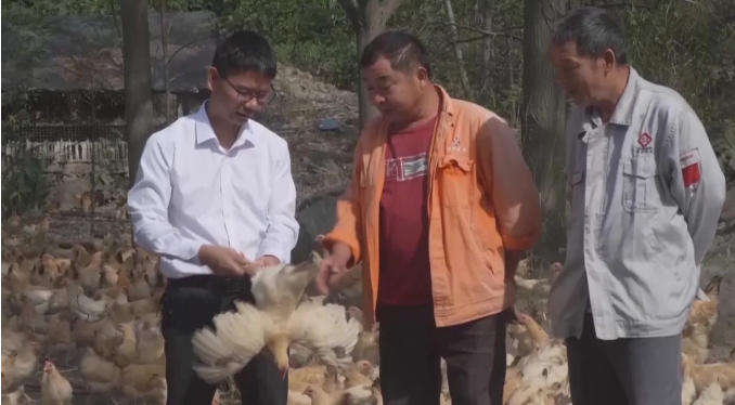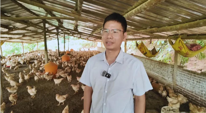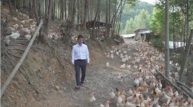 朱楚军:“说起富宁村的产业‘多面手’,就不得不提起山里的‘致富飞禽’——岑溪三黄鸡。让我们一起去致臻生态养殖有限公司的养鸡场,看党员返乡创业如何带火‘一只鸡’,激活‘产业链’。”