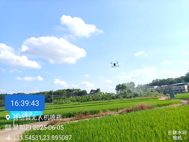 苍梧县无人机“飞防”确保早稻丰收