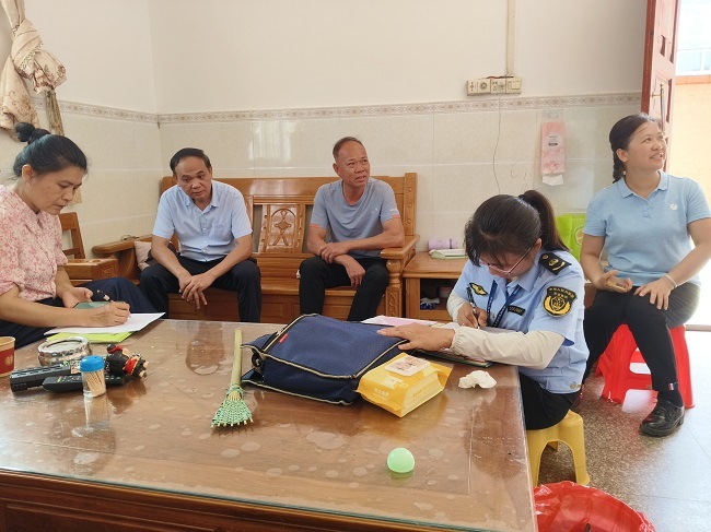 一是政策入村,宣传先行——在横江村委会,工作人员以通俗易懂的方式向村干部及果农代表解读《中华人民共和国农产品质量安全法》《农药管理条例》等法律法规与科学用药规范,发放实用资料,为源头管理筑牢思想防线。