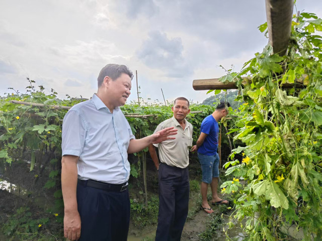指导组一行首先来到龙圩区广平镇夏村村苦瓜专业合作社,了解苦瓜种植规模、收益及机械化等情况。据介绍,该村通过“党支部+”的联动模式,吸引种植户加入苦瓜种植,种植规模达50多亩,苦瓜亩产量在1000-1500斤,亩产值可达1.5-2.2万元,产业增收效应显著。但在机械化应用方面,该合作社暂未配备农机具,从种植到管护全程依靠人工操作。刘志刚与合作社社长交流时指导,机械化是提升生产效率、释放产业效益的核心引擎,要加快引入农机设备,以机械化赋能苦瓜产业规模化发展,推动产业做大做强、提升质效。