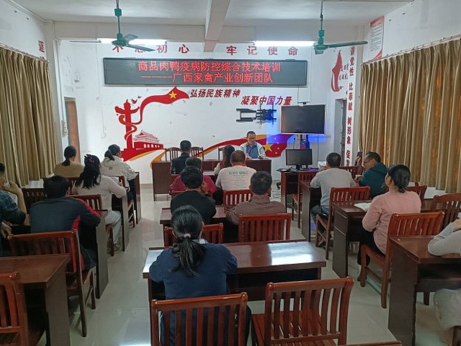为助力广西“强农富民”行动,推动广西养禽业绿色健康发展,广西兽医研究所家禽产业创新团队、畜牧产业先锋队禽病分队专家组一行3人,于12月3日至4日前往柳州市实隆集团开展肉鸭疫病防控技术培训服务。