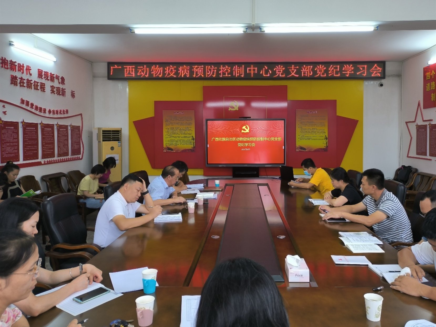 6月18日,广西壮族自治区动物疫病预防控制中心党支部召开党纪学习教育专题学习会,中心班子成员,全体党员和中层干部参加了会议。