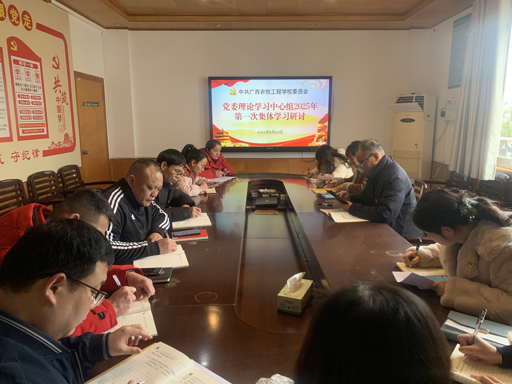 2月24日,广西农牧工程学校党委开展“学思想·强纪律·谋新篇”中心组2025年度第一次集体学习,深入学习党的二十届三中全会和中央纪委四次全会精神,以全面从严治党引领农业职教改革创新。