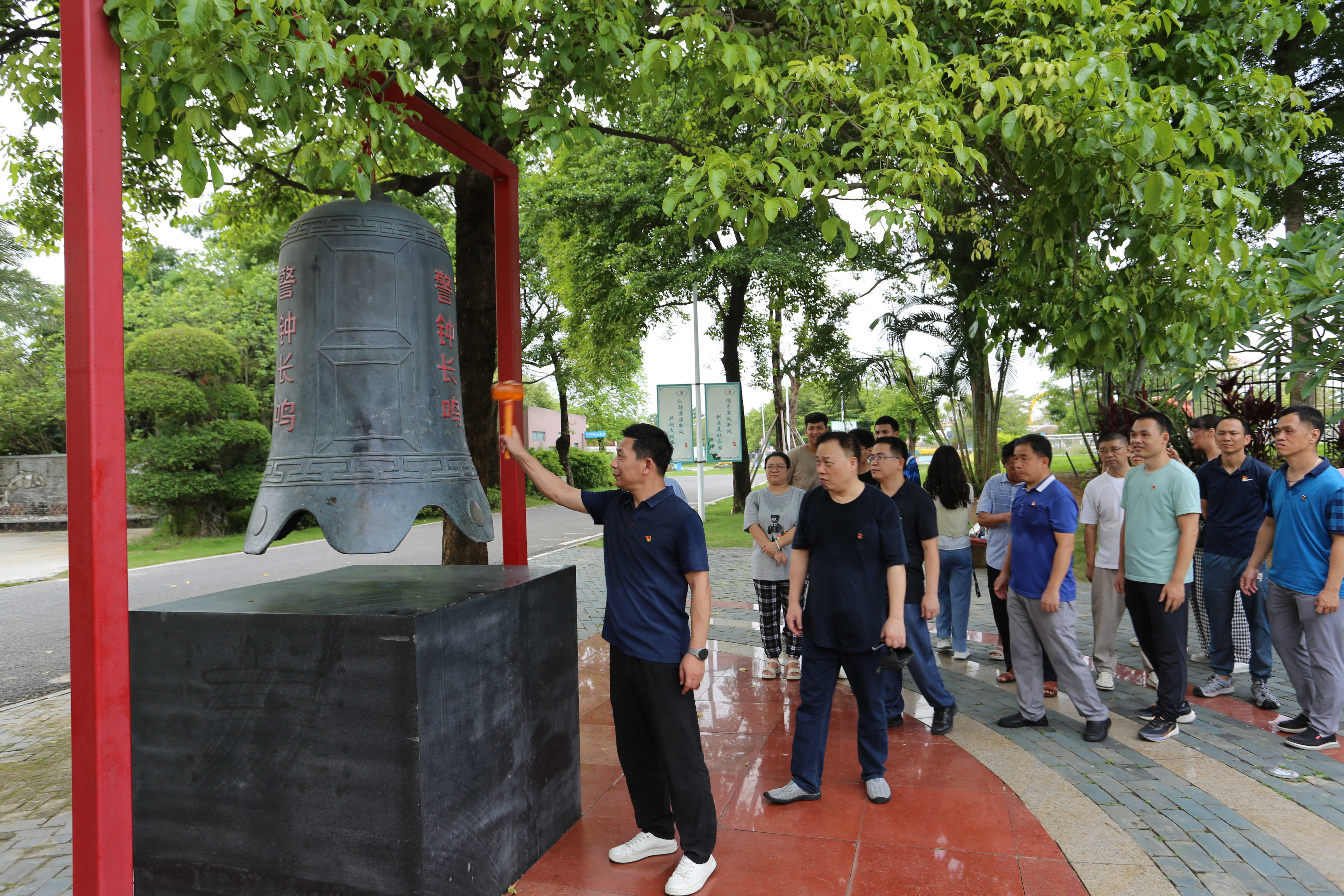 参观结束后,党支部书记作总结讲话并带领全体党员重温入党誓词,并要求每个党员依次敲响“廉洁警钟”,回荡的钟声警示同志们时刻保持清醒头脑,永葆清廉政治本色,做一个干干净净、坦坦荡荡、老老实实、清清爽爽的明白人。