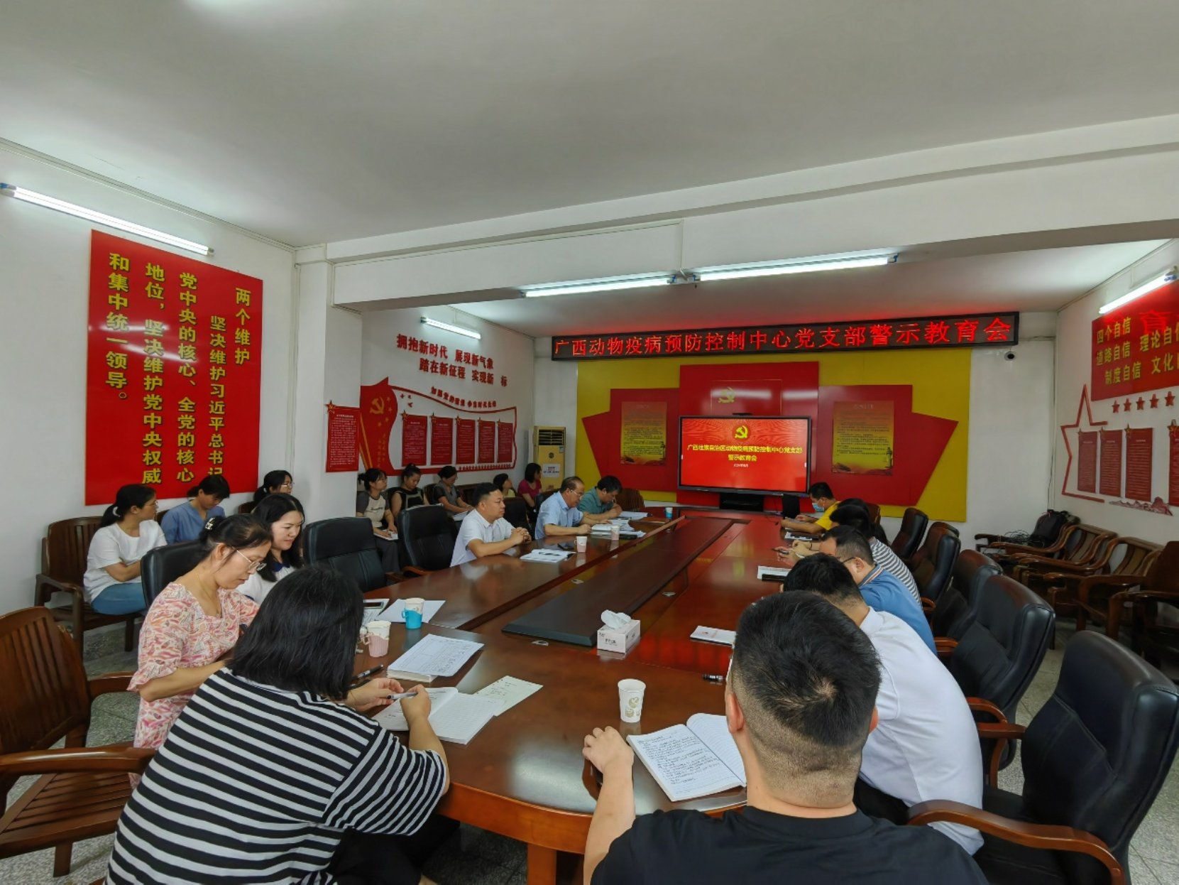 为加强廉政警示教育,使党员干部受警醒、明底线、知敬畏,6月18日,广西壮族自治区动物疫病预防控制中心党支部召开了廉政警示教育会,深入学习贯彻《中国共产党纪律处分条例》,加大警示教育力度,持续强化队伍作风建设。中心班子成员,全体党员和中层干部参加了此次会议。