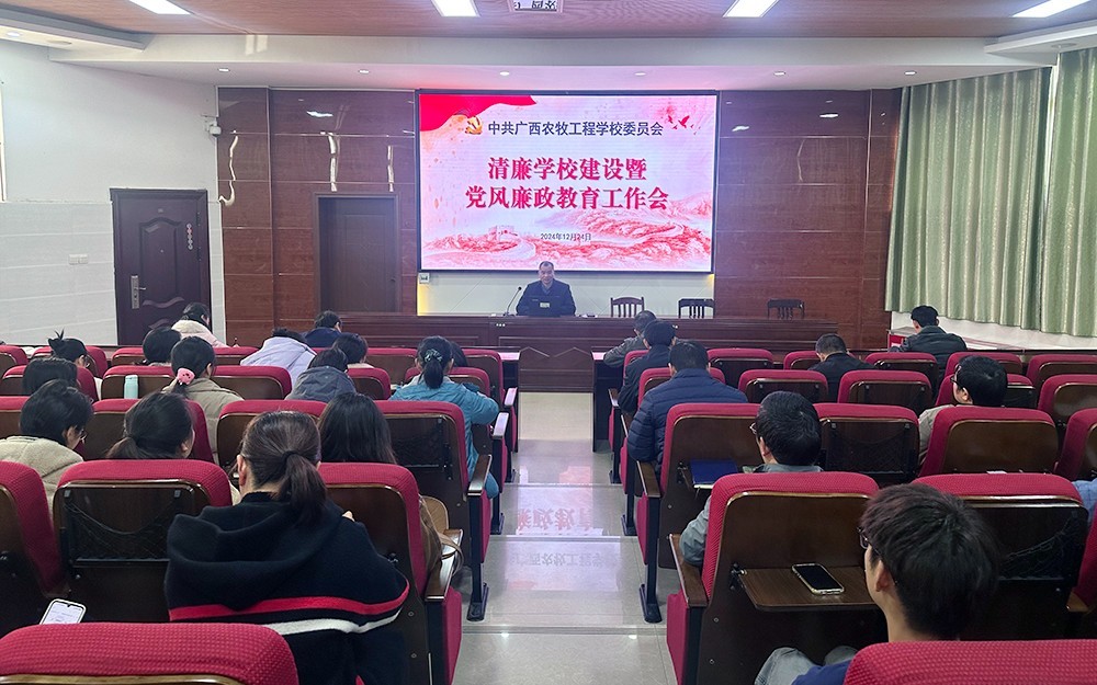 12月24日下午,广西农牧工程学校召开清廉学校建设暨党风廉政教育工作会议。会议由学校党委书记、校长主持,全校教职工参加会议。
