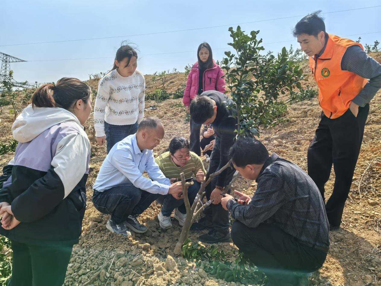 近年来,柑橘产区蓟马灾害频发,落花落果、花皮果等问题让果农们忧心忡忡。春季气温回升,柑橘进入春梢花蕾萌发阶段,干旱条件下蓟马虫口基数有上升趋势,正是防控的关键时期。针对这类紧迫问题,培训特别开设了《柑橘蓟马发生规律及综合防控》《沙糖桔提质增效技术》《柑橘木虱、黄龙病等重大病虫综合防控》等课程,为沙糖桔产区的病虫害防治与品质提升提供了专业的服务指导。科技服务团队还深入普合乡新丰村等柑橘示范种植基地,围绕幼苗定干修剪、树势肥水管理、病虫害防治以及嫁接树后期管理等方面,手把手为果农传授技术,现场解答疑问,让果农们收获满满。