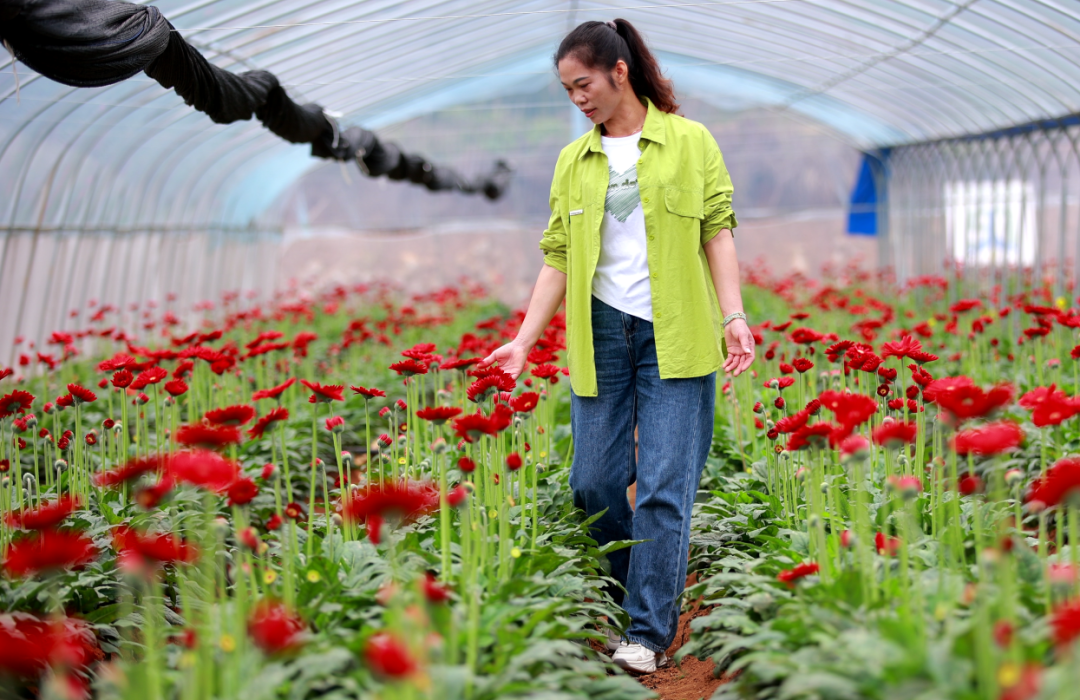 李彩兰在花卉基地工作。