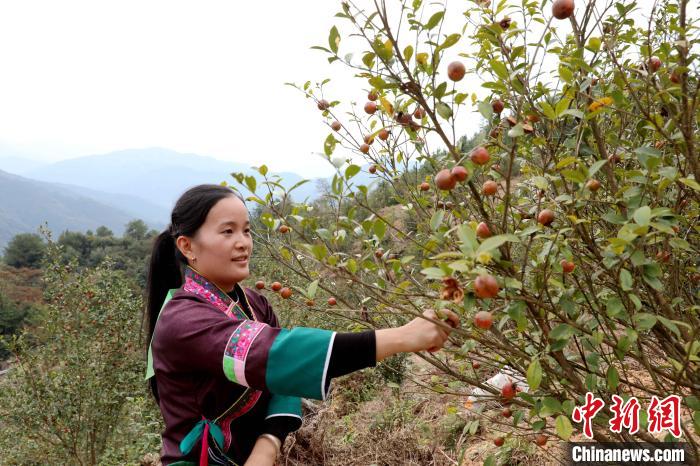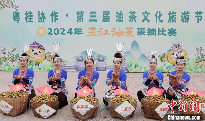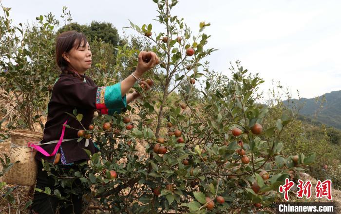 广西侗乡举办油茶采摘比赛庆丰收